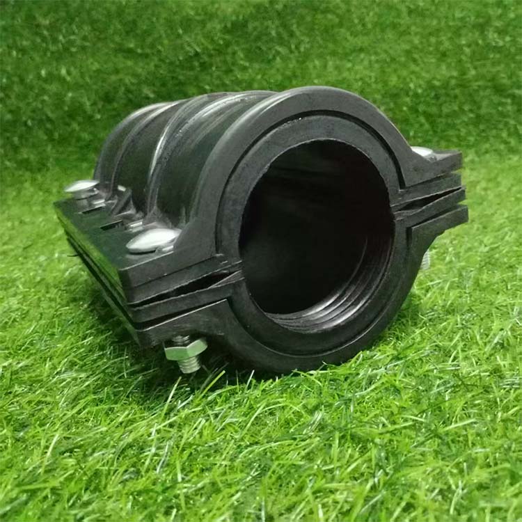 Srpski језикhdpe pipe repair clamp is made from HDPE raw materials and can be used in open fields, underground pipework, and greenhouse irrigation. This material is resistant to soil corrosion and extreme temperatures. The product features a built-in elastic rubber sealing ring that can withstand pressure up to 1.6MPa, ensuring stable and long-lasting sealing performance. Installation is simple; even beginners can complete the task by tightening bolts with a wrench. No professional welders or large equipment are needed, allowing for on-the-spot repairs and reducing labor costs. It is an excellent choice for small and medium-sized farmers, large farms, and irrigation projects.