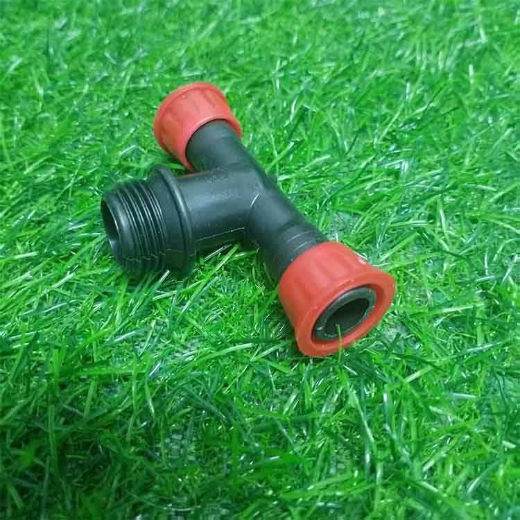 T-shaped micro ignition coupling adopts the pull ring/lock catch design.Traditional barbed joints are prone to "peeling" and spraying water under high temperatures (softening of pipes) or high water pressure in summer.After inserting the pipeline, our product, it is locked physically by rotating the ring catch. The pressure bearing capacity is 2-3 times higher than that of ordinary joints, and even the high pressure of tap water can be as stable as Mount Tai.